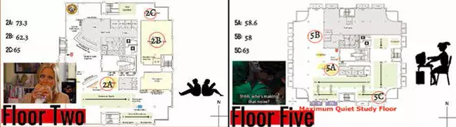 View Original Image at Full SizeMap of two floors of Illinois State University’s Milner Library characterizing sounds detected by students.