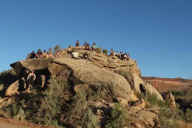View Original Image at Full SizeGroup photo of students and instructors preparing to watch a sunset near the campsite in southeast Utah.