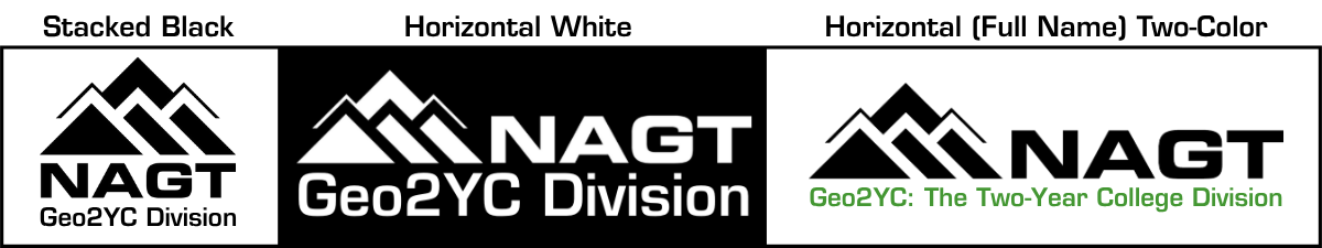 Each logo for NAGT's sections and divisions includes three key elements: a graphic representation of mountains, the association's initials (NAGT), and the name of the section or division.