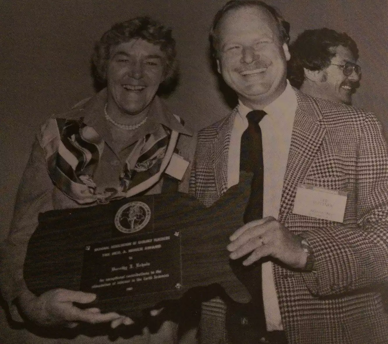 J. Fryxell Accepting the Award for her Father, 1981 Neil Miner Award Recipient Roald Fryxell
