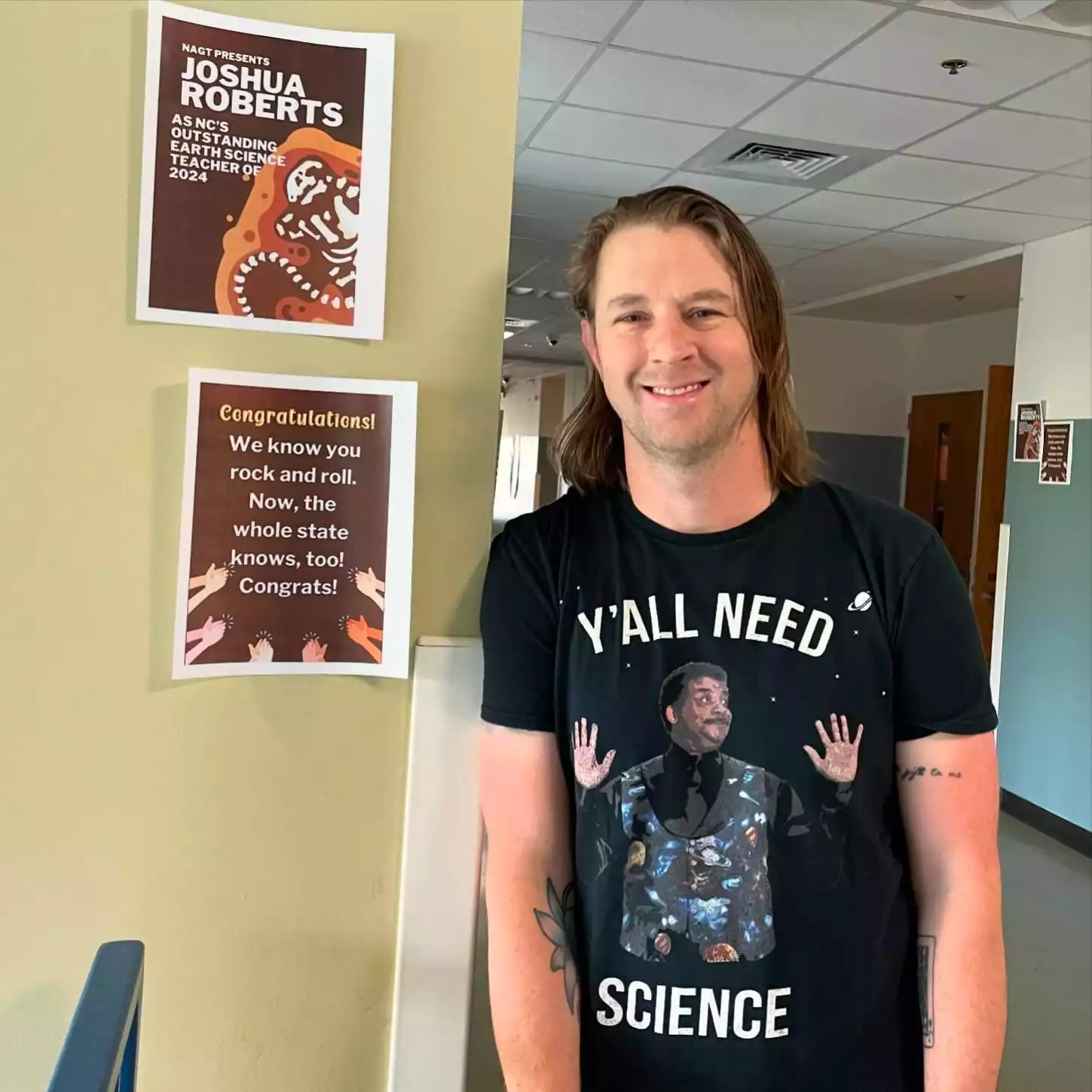 In addition to his passion for the geosciences, Josh is also dedicated to the advancement of inclusive and equitable teaching in NC public schools. He sponsors two student clubs at Watauga, including the Social Justice Initiative Club and the TBD Club (for LGBTQ+ youth). "We have got to work harder to preserve the autonomy of our students. To allow them to be who they know they are, and show them every day that they matter. When I am teaching my students how to identify a rock, or how to drill a tree core, it doesn't matter if they are black, brown, white, male, female, transgender, gay, straight, rich, poor, a super athlete or a super nerd. Earth Science is for EVERYONE. And every student should be able to walk into a school without feeling fear, embarrassment, shame, or hate. I love all of my students. And in my class, I teach all of my students to love the Earth."