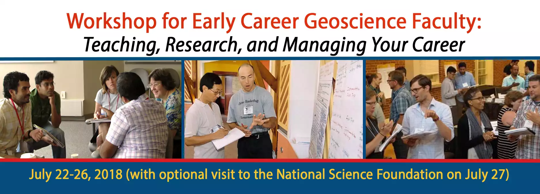 The 2018 Early Career Geoscience Faculty Workshop: Teaching, Research, and Managing Your Career takes place July 22-26 (with optional trip to NSF on Friday, July 27) at the University of Maryland, College Park, MD.