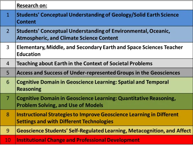 Table 1. Themes that span the spectrum in which GER operates and have the potential to impact undergraduate geoscience teaching and learning.