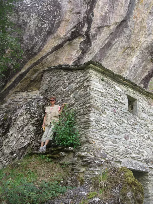 View Original Image at Full SizeMarica Bjornerud standing in front of a stone house in the "Apulian Alps" of northern Tuscany.